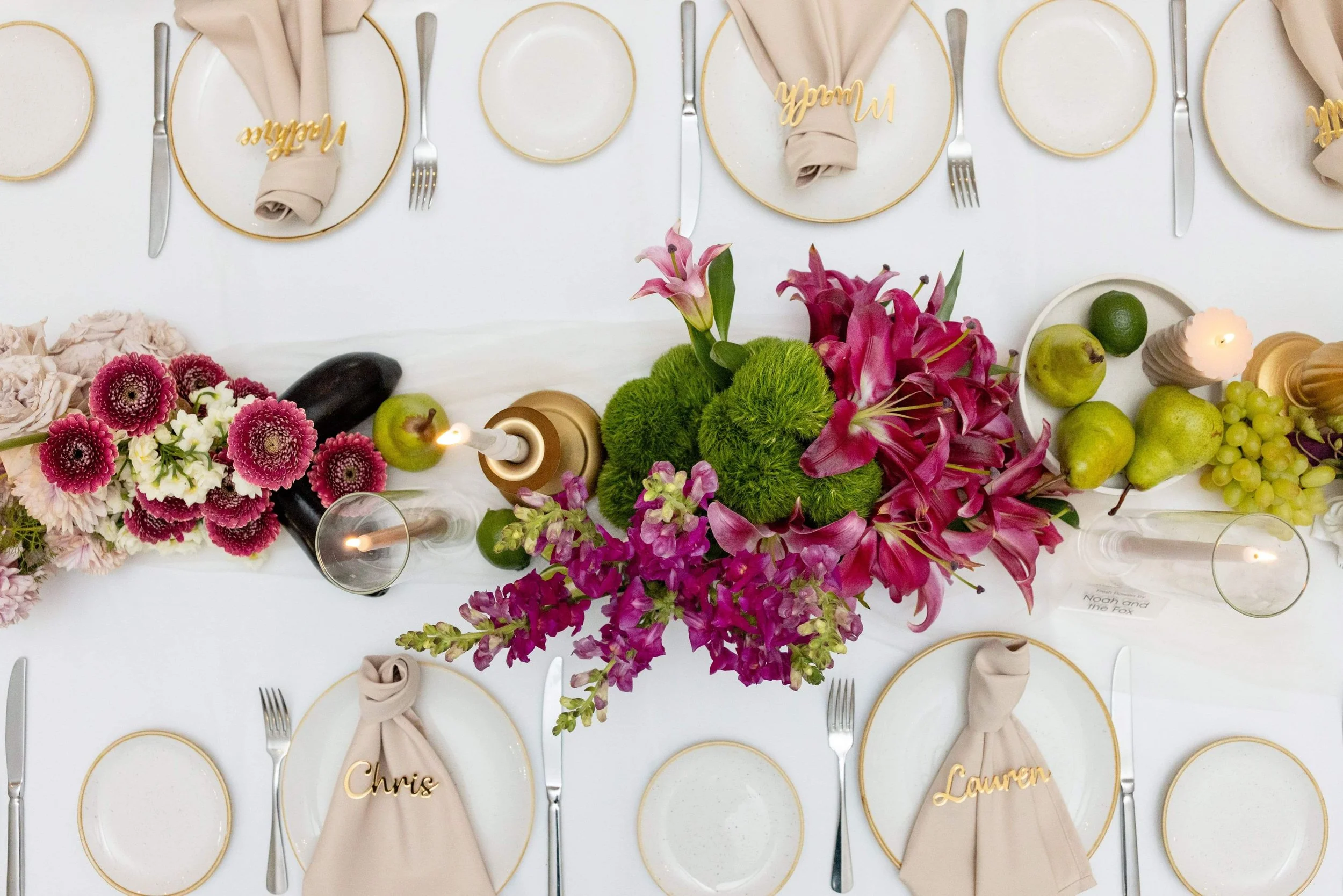 “Working with Tiff and Noah and the Fox was nothing short of enchanting. From the very first design conversation, it was clear we were in the hands of someone truly gifted—but nothing could have prepared us for what she created on our wedding day.